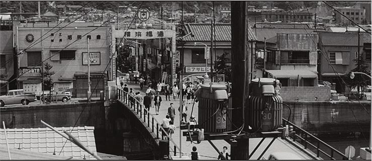 Некоторые разновидности бетона использовались в строительстве начиная с 6-го тысячелетия до н. э.; римляне стали добавлять в бетон конский волос и вулканический пепел и возводили из него такие конструкции, как крыша римского Пантеона. Пластичность бетона позволяла придавать зданиям новый облик. По сравнению с европейскими азиатские города перенаселены, в них все спрессовано и многослойно – это квинтэссенция урбанизма. Немного освоившись в суматохе этой рукотворной среды – в ее движении, мельтешении, акцентах, – наши глаза иногда вдруг цепляются за кого-то из трех десятков прохожих, попавших в «кадр», и мы пытаемся представить себе, кто этот человек и куда он держит путь. Объектов в нашем поле зрения столько, что глаза разбегаются, а кроме того, мы видим здесь и некие идеи. Арка – это граница: проходя под ней, жители оказываются в другом районе. Дома, которые смотрят на реку и три несчастных деревца, могут похвастаться «видом». Природа вытеснена за пределы города, туда еще нужно добраться. Перекресток путей-дорог демонстрирует, что город спланирован так, чтобы по нему можно было передвигаться в разных направлениях и с разной скоростью: вот неторопливый пешеход, вот автомобилист, вот лодочник, который привез в город товары и развозит их по лавкам, – все они сосуществуют в едином пространстве. Город не делится на зоны в соответствии со скоростью движения. Японский город (судя по начальным кадрам, место действия – Токио, хотя на самом деле это Иокогама, узкие улочки которой больше походят на лабиринт) дополняет наше представление об урбанистическом пространстве. К драматичному напряжению, сутолоке, жестокости и умудренности добавляется хаотичность и синхронность.