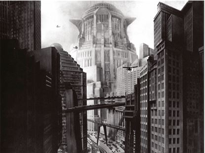 Это кадр из фильма Фрица Ланга «Метрополис». Между зданиями летают аэропланы, между верхними этажами переброшены пешеходные мосты. Метрополис не менее суетливый и разнонаправленный, чем любой японский город, с той лишь разницей, что суета эта поднялась в небо. Сама жизнь обрела, кажется, воздушную легкость. Однако фильм Ланга, повествующий о жесткой иерархии городского общества, снят в жанре научно-фантастической антиутопии. Это история о нещадной эксплуатации и восстании рабочих. Героиня в какой-то момент предстает в образе вавилонской блудницы, а кабаре, где она танцует, называется «Ёсивара», как токийский район красных фонарей. Метрополис вобрал в себя древние города, японские мегаполисы и модернизм.