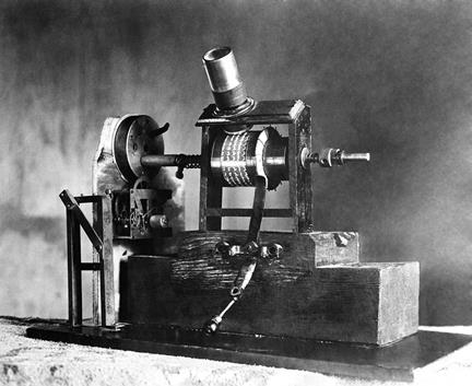 Это было за шесть лет до триумфа братьев Люмьер! Громоздкий съемочный аппарат, созданный Диксоном, назывался кинетографом, а аппарат для индивидуального просмотра фильмов, который представлял собой тумбу со зрительным отверстием наверху, назвали кинетоскопом. 31 июля 1891 г. Эдисон запатентовал свою технологию в США – Луи Лепренс, который мог бы опередить его, как мы помним, не успел это сделать. В феврале 1894 г. Эдисон уже открыл собственную киностудию. Садуль цитирует книгу «Эдисон, его жизнь и изобретения»: