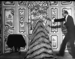 Мельес использовал этот трюк в своем фильме «Исчезновение дамы в театре Робера Удена» (1896 г.), который копировал один из знаменитых фокусов театра «Робер Уден» – с той разницей, что для производства фокуса в условиях театра требовалась некая машинерия (в данном случае это был трап), а в кино все делалось гораздо проще (Рисунок 12):