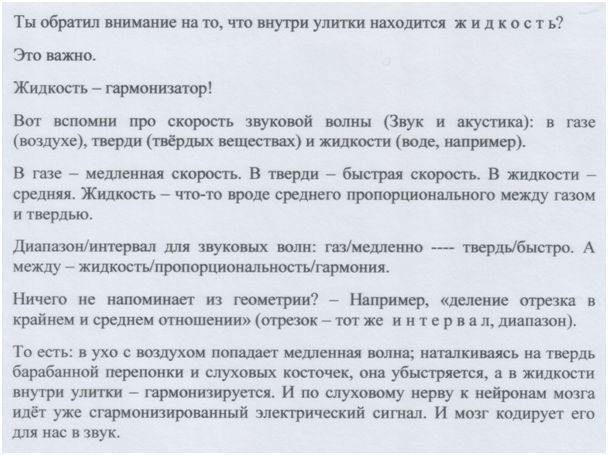 Если собрать пентаграмму в пирамиду, она легко смоделирует двойную спираль (красные и синие полосы в модели). Такую же спираль образуют электрические сигналы внутри нашей ушной улитки (красные и синие стрелки). Эти сигналы и поступают в наш мозг, а мозг представляет их нам в виде звуков. Так мы слышим мир и слышим его музыку.