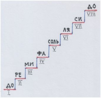 Вот и наша лестница квинт пронумерована числами-ступенями.