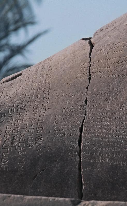 7. Этот фрагмент стопы Мемнона (трещина также видна на рис. 6) дает представление о том, как тесно расположены на ней надписи (в основном короткие стихи на греческом). Слева можно увидеть еще одно стихотворение Балбиллы: «Я, Балбилла, услышала от говорящего камня божественный голос Мемнона…»