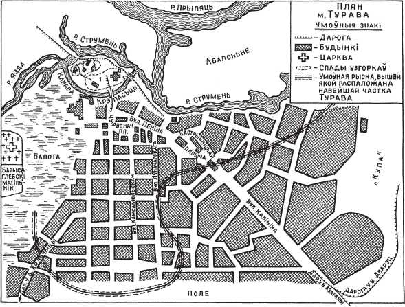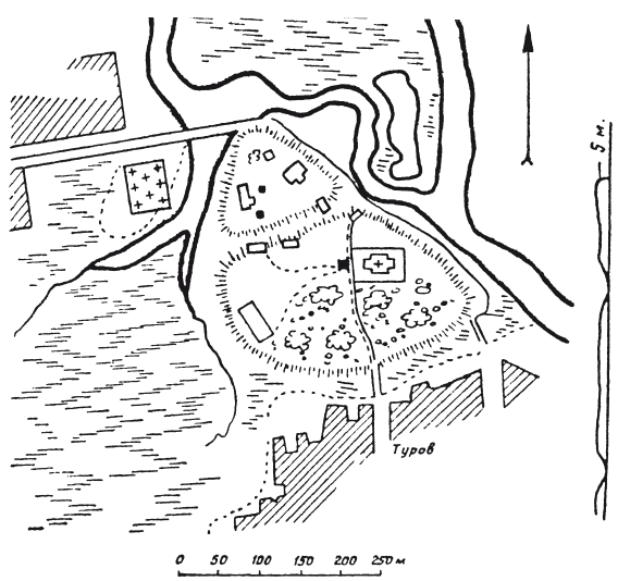 План древнего Турова в 20-х годах XX в. (по А. Круковскому)