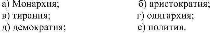 9. Как известно, Аристотель выделял шесть форм правления (три правильные и три неправильные). Укажите правильные формы.