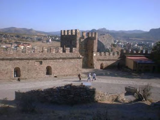 Дальше несколько километров можно проехать на велосипеде или пройти пешком по берегу до Прибрежного, а затем подняться в Солнечную Долину. По пути вы можете посмотреть декорации, оставшиеся после съемок фильма «1001 ночь». В Солнечной Долине при винзаводе есть хорошая столовая, где вас могут вкусно и недорого накормить. Далее по шоссе вы также можете доехать до Судака. Как очередное место для отдыха, не доезжая до Судака по данной дороге, находится мыс Мега-ном. Я сам там не был, но советую побывать. Ходят легенды о паранормальных явлениях в этом месте. Он считается самым теплым местом Крыма, состоит из скальных пород, лишенных растительности. Пляжи валунные, у берега можно видеть торчащие из воды камни.