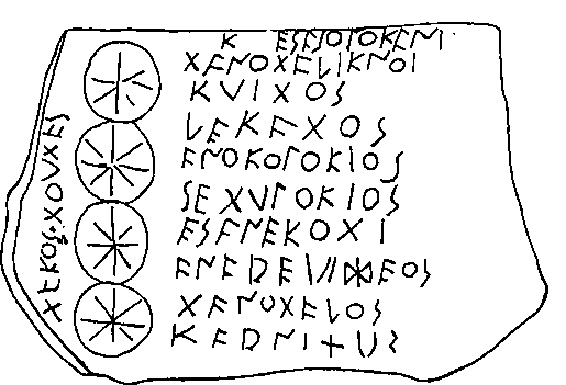 Кельтская надпись, сделанная лепонтийскими буквами. Сан-Бернардино, Италия