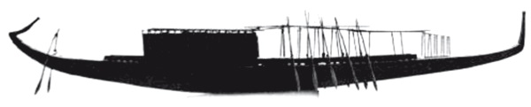 Некоторые специалисты высказали по этому вопросу более конкретные соображения. Бьёрн Ландстрём полагал, что прародительница «Царской ладьи», пусть и уступавшая ей размерами, но в остальном такая же деревянная плоскодонка из «сшитых» встык досок, широко представлена рисунками на герзейской погребальной керамике и петроглифами Верхнего Египта и Нубии, т. е. получила распространение на Ниле во второй половине IV тыс. до и. э. [297]. Ему вторила Шерил Уорд с наблюдениями, что «к периоду Нагада ПЬ (ок. 3500 г. до и. э.)»[45] в росписи керамических сосудов появились длинные многовесельные «серповидные» лодки, которые, судя по сохранившимся изображениям, существенно отличались от предшествующих или современных им папирусных «плотов» и «почти наверняка были деревянными» [451]. Американский антрополог и египтолог Стивен Винсон считал ладьи «герзейских декорированных горшков» несомненно деревянными, в чем его убеждали их в большинстве случаев «параллельные» верхний и нижний линейные контуры, т. е. очерченные дугами одинаковой кривизны, не сходящиеся к носу и корме «остриями» наподобие полумесяца и не завершающиеся «штевнями» – папирусными связками [441; 443].