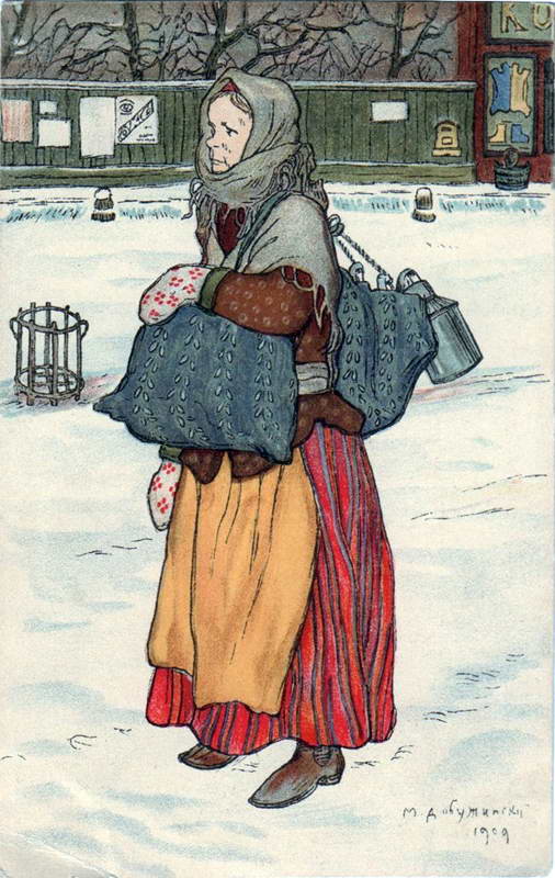 Типы Петербурга. Продавцы сбитня. Акварель. 1910
