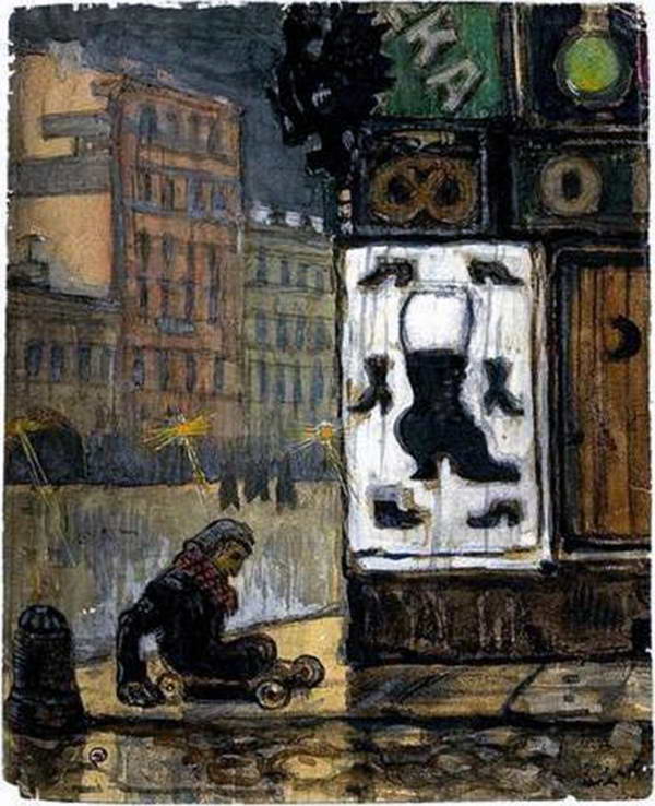 Вильна. Трущобы. Акварель, гуашь. 1907
