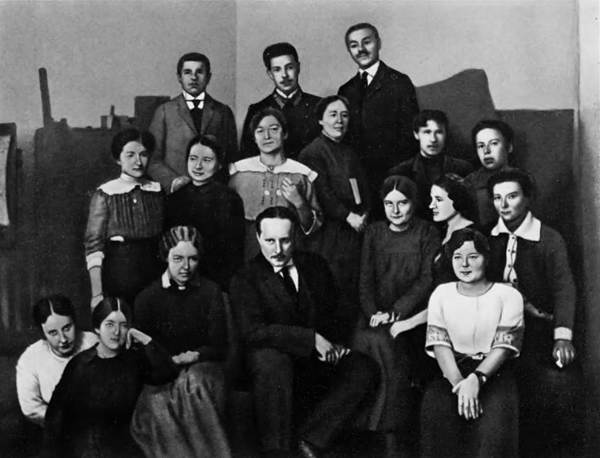 В школе М. В. Добужинского и К. С. Петрова-Водкина. Фот. 1912 г.
