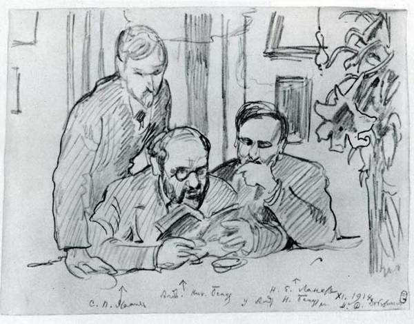 С. П. Яремич, А. Н. Бенуа, Н. Е. Лансере. 1914