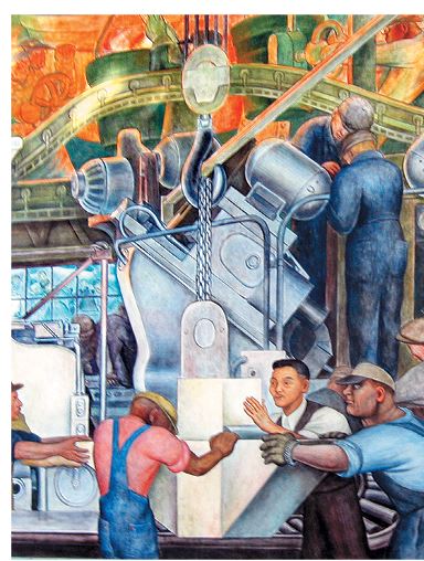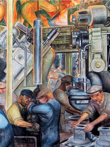 Часть фрески Диего Риверы «На сборочной автомобильной станции» в Детройтском институте искусств