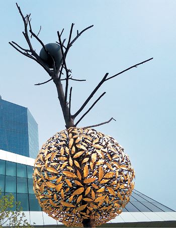 Деталь скульптуры «Гравитация и рост» Джузеппе Пеноне, расположенная у штаб-квартиры Европейского центрального банка во Франкфурте