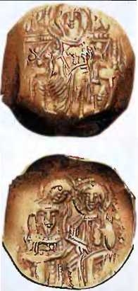 Император Михаил VIII на коленях перед Христом. Монета, выпущенная в ознаменовании освобождения Константинополя от крестоносцев