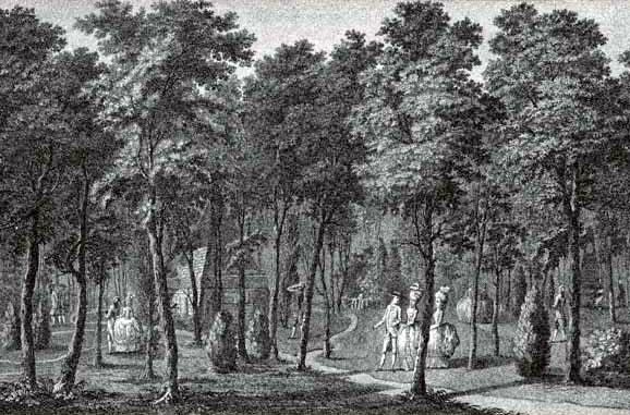 Памятники, в изобилии расставленные по «лесу», должны были напоминать гуляющим руины готических замков, минареты, голландские мельницы и так далее. Несмотря на обилие «гробниц», в реальности в парке не было захоронений. Это полностью соответствовало модели английского пейзажного сада, оформившейся в 1720–1730-е годы: в саду Твикенхэм Александра Поупа[93], изобилующем гротами и руинами, в парках Уильяма Шенстона и резиденциях аристократов — парках Стоу и Ховард.