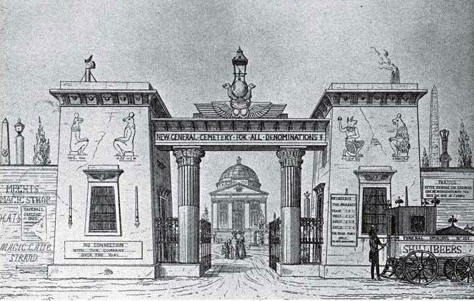 Между тем ситуация с захоронениями в Лондоне становилась все более критической. С 1801 по 1821 год население английской столицы выросло почти вдвое, между тем как новых площадок под захоронения выделено не было. Приходские кладбища настолько переполнились, что их уровень был на несколько метров выше уровня улиц. И все же более ранние попытки Кардена провести свои идеи в парламенте были встречены с откровенной издевкой. В 1821 году Карден основал похоронную компанию General Burial-Grounds Association и выпустил «рекламный проспект», планируя собрать 300 тысяч фунтов с продажи акций по 50 фунтов каждая и пустить их на создание кладбища в парижском стиле на Примроуз-хилл.