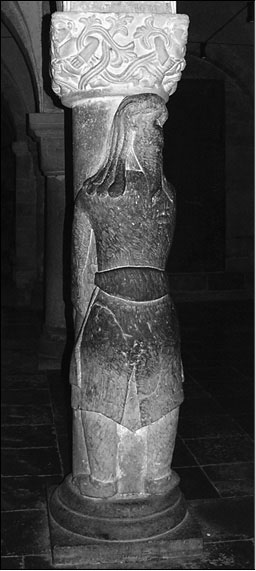 Тролль Финн, поддерживающий колонну собора в Лунде (Швеция). Скульптура XII в. Тролль хотел разрушить собор, но был обращен в камень святым Ларсом (Лаврентием). Финн притворялся человеком, поэтому выглядит как человек