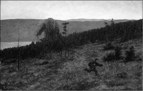 Бегство от тролля. Картина Т. Киттельсена (1900)