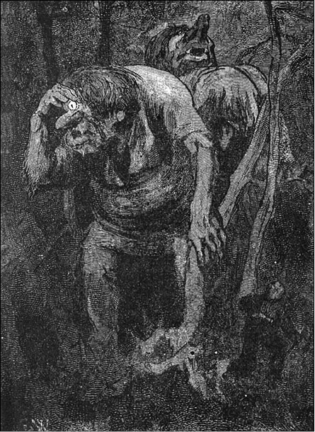 Как два мальчика встретили в Хедальском лесу троллей. Иллюстрация Э. Вереншёлля (1883)