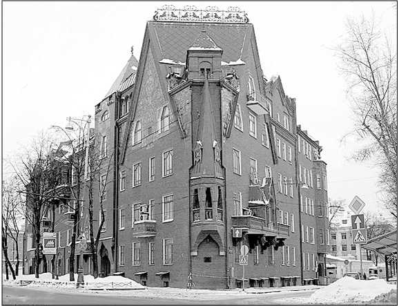 На левом углу 1-го Зачатьевского переулка строится новое здание (№ 13), заменившее собой внешне неинтересное, но богатое историко-бытовыми воспоминаниями, известное в Москве под именем «Голубятни». Как рассказывал Гиляровский, его выстроил богатый трактирщик, любитель голубей. На первом этаже трехэтажного дома находились лавки, на втором «дворянские» залы трактира с отдельными кабинетами, которые приглянулись революционерам, а на третьем – простонародный трактир с огромным залом. Над домом стояла обширная голубятня. Часть трактира отделялась под арену, где происходили запрещенные тогда петушиные бои.