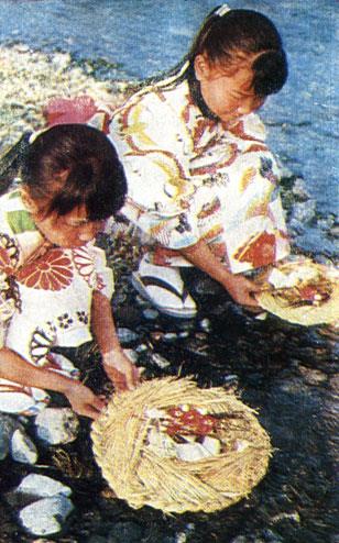 Церемония спуска на воду соломенных корзинок в г. Кураёси (преф. Тоттори) с целью отвести несчастье от детей