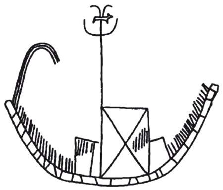 Тип 10 по Червичеку – родственная его типам 7 и 8 поздняя эволюционная версия «прямоугольных» ладей (рис. 45). Лодка аналогичного рисунка, обнаруженная среди петроглифов близ ал-Каба в Верхнем Египте, была датирована концом додинастического периода [257].