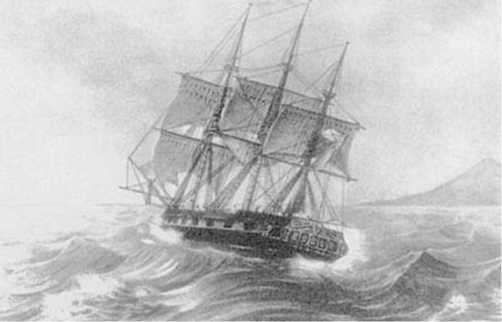 Изображение фрегата «Надежда», на котором Андрей Тургенев собирался совершить кругосветное плаванье