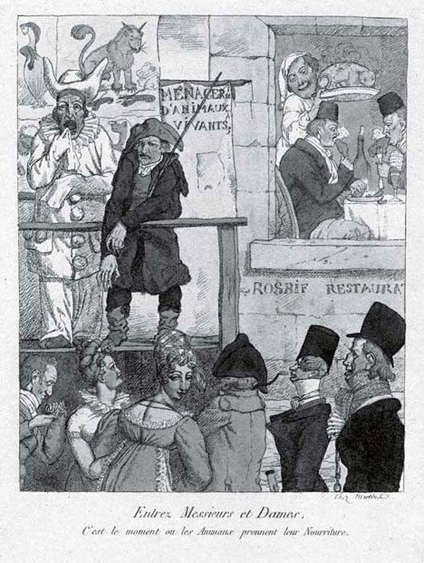Рис. 17. «Подходите, дамы и господа! Настало время кормления зверей!» Го де Сен-Жермен по рисунку неизвестного художника. 1817.