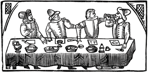 А что насчет отказа от выпивки? Мы уже встречались с важной в данном случае концепцией: «за здравие» («a health to…»). Пить «за здравие» было так или иначе обязательным для всех. Когда кто-то (обычно мужчина) вставал, поднимал бокал и произносил волшебные слова, все остальные мужчины обязаны были выпить. Проповедник Томас Томпсон, похоже, однажды обидел целую комнату, отказавшись пить. В одной из своих проповедей 1612 года он всячески ругает этот обычай, но дело там явно еще и в каком-то личном дискомфорте: он говорит, что человека, который отказывается пить, «не считают хорошим малым и обзывают подкаблучником или пуританином».
