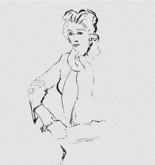Каролина Ребу. Рисунок П. Эриа в альбоме «Тридцать кутюрье парижской моды» для журнала Vogue.