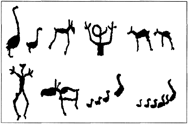 На петроглифах (наскальных рисунках), найденных в Карелии, на берегах Белого моря и Онежского озера, и относящихся приблизительно ко 2-му тысячелетию до н. э. (рис. 18), видны изображения уток с выводками утят и какой-то птицы с очень длинной шеей (лебедя?).