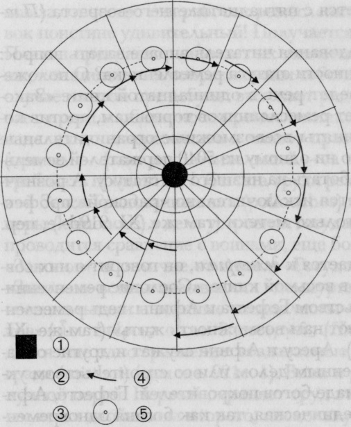 6 Стрелки показывают ежемесячное перемещение двенадцати отрядов юношей по территории полиса в течение года (каждый год направление движения меняется на противоположное)