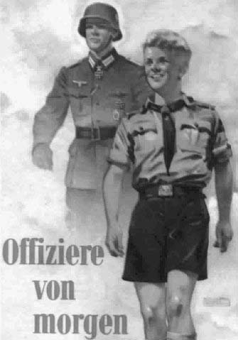 В течение всей войны через систему «Гитлерюгенда» проводилась подготовка кадров для Вермахта. В 1942–1944 годах практически вся молодежь допризывного возраста прошла обучение, часто целыми классами, в специально подготовленных лагерях, уже под руководством кадровых офицеров. В конце войны нацистское руководство даже сформировало особую танковую дивизию СС «Гитлерюгенд», укомплектованную в основном 17–18 летними добровольцами, был объявлен набор молодежи в народное ополчение – «фольксштурм». А в условиях крушения нацистской империи стал проходить призыв «добровольцев» 15–16 летнего возраста (даже 14 летних). Из этих солдат-школьников формировались отряды «вервольф» (оборотни), от которых нацисты требовали фанатично сражаться до последнего дыхания. А для особого военного воспитания – воспитания солдата, снимались и особые военные фильмы, ориентированные на молодых юношей и подростков. Среди них можно выделить несколько: фильм Карла Риттера «Кадеты» (1941), «Зрелая молодежь» (1939), «Генерал Штифт и его банда» (1937), «Дропс станет летчиком» (1938), «Выше голову, Йоханнес» (1941), «Молодые» (1941), «Жакко» (1941), «Молодой Адлер» (1944), и другие. Всех их объединяет то, что все они прославляют столь важный для нацистов культ военной формы, желание воевать, самопожертвование ради общества, нации и фюрера.