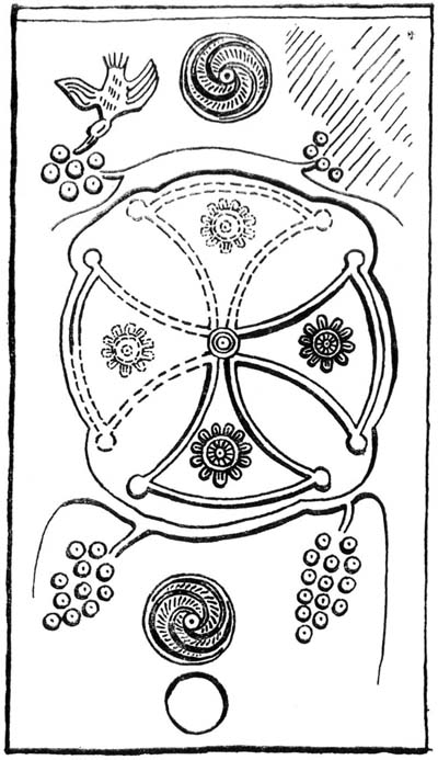 Рис. 40. Один из наиболее ранних местных христианских памятников Цебельды — резная известняковая плита из храма VIII в. (пос. Марамба).