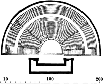 Зрители помещались на скамьях, поднимавшихся концентрическими уступами (рис. 98).
