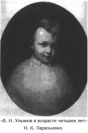 В изображении художника четырехлетний Ильич заметно повзрослел и поправился, а его взгляд приобрел многозначительную задумчивость, контрастирующую с любопытствующе беззаботным выражением лица Володи на фотографической карточке. Интересно и то, что в живописном изображении маленького Ильича Пархоменко отступил от ранее характерной для него манеры письма — экспрессивного мазка без предварительного контура. В отличие от прежних портретных работ Пархоменко (наиболее известными из которых — в ряду созданной художником колоссальной галереи портретов русских писателей — остаются портреты Л. Н. Толстого, В. Г. Короленко, А. И. Куприна, А. А. Блока), маленький Ленин изображен художником в манере, напоминающей виртуозной «невидимостью» мазка и приглушенностью цвета портретные полотна Левицкого и Боровиковского. Портрет Володи по-барочному красив и вместе с тем загадочен и производит впечатление (усиленное глубиной темного фона, высвечивающего лицо ребенка) таинственно пророческого и ретроспективно провиденциального.