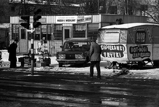 Их нередко можно увидеть на снимках 1989, 1900, 1901 годов, они любят попасть в кадр: кемпинговые прицепы Niewiad?w, переоборудованные в импровизированный продовольственный магазин или небольшой киоск с горячими бутербродами и пиццей, украшенные изображением повара с упаковки «Вегеты» или не совсем верно нарисованным Микки Маусом. Там продают мороженое и фастфуд поздней ПНР – горячие бутерброды и хот-доги по-польски, которые прозаически называются булкой с фаршем (грибным). Солнечные сценки запечатлены в разгар сезона сальмонеллы. Телевизор предупреждает об эпидемии, советует избегать мороженого, не есть молочных продуктов и, упаси боже, яичных блюд. «Сальмонелла, я тебя не люблю», – поет рок-группа Klaus Mit Foch, уже без Леха Янерки.