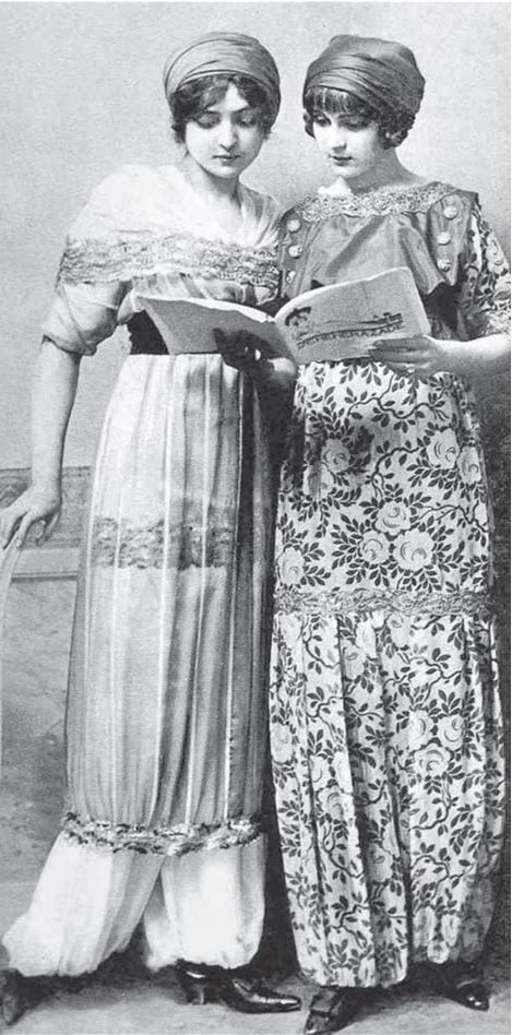 Название было не очень элегантное и женственное, его быстро заменили на «платье-веретено», больше связанное с одеждой, тканями и вызывавшее в воображении формы женского тела. Если само движение сковывалось платьем, то ощущение свободы передавалось другими способами во всех коллекциях этого любителя экзотики, театрала, поклонника «Русских сезонов». Он охотно провоцировал общество, предлагая дамам яркие необычные цвета, переливчатые ткани, широкие панталоны, юбки в турецком стиле, тюрбаны, вуали, расшитые жемчугом и отороченные мехом шали.