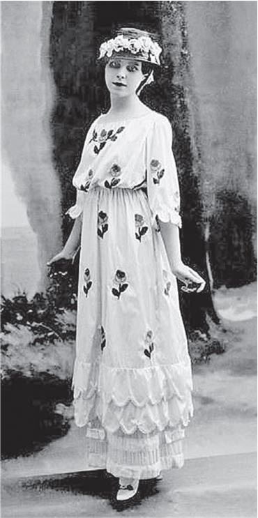 Жак Дусе родился в 1853 году, сначала управлял семейным магазином мужского белья, потом магазином женского белья и в результате стал хозяином знаменитого Дома моделей в Париже. Он продолжал линию «драпировок», начатую Вортом, облекал женщин в струящиеся светлые ткани жемчужных переливающихся оттенков, украшал воланами и складками, лишая строгого четкого силуэта, бывшего до этого в моде. В его салоне появлялись «все восходящие звезды, сиявшие в то время: Марта Бранде, Тео, Мэри Гарден[143], Райхенберг, Лиана де Пужи[144], Эмильена д’Алансон[145], прекрасная Отеро[146], Нелли Нустраттен, Марта Элли, Жермен Тувенан, Маргерит Брезиль, Габи де Наваль, Лиана де Ланси и так далее. Они ждали до последней минуты, чтобы заказать себе наряд, который стал бы сенсацией в ближайшее воскресенье, и часто модельеру приходилось импровизировать, выдумывая модель в субботу вечером и (…) судорожно примеряя ее днем в воскресенье»[147]. Маленькие и большие звезды сцены, королевы полусвета наряжались и украшали себя у модельера, освещая его, в свою очередь, своей славой.