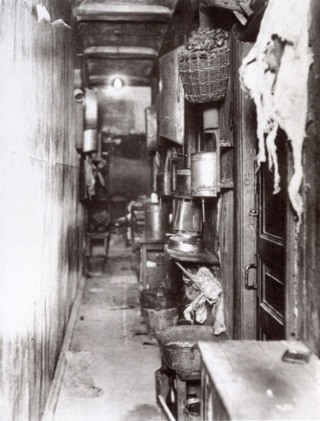 Коммунальные квартиры стали непременным и неизбежным атрибутом послереволюционного быта. Можно себе представить, как осложняли жизнь «места общего пользования», кухня, где одновременно шипело несколько керосинок и примусов, вражда случайно объединенных жилплощадью самых различных по культурному уровню и происхождению семей, драка за крохотный участок в коридоре или на кухне: «Опять ваш велосипед весь коридор загораживает», «А вы свой столик на кухне подальше отодвиньте, нечего других оттеснять», «Вы бы хоть научились в уборной воду спускать, теперь лакеев нет», «Не смейте собаку в ванне мыть» и т. п. Входы в квартиры были снабжены либо несколькими «индивидуальными» звонками, либо одним общим, но с многочисленными карточками: Ивановым – один раз, Петровым – два звонка, Сидоровым – два коротких, один длинный и т. д. На самих входных дверях висело по нескольку почтовых ящиков с указанием фамилии и выписываемой периодики.