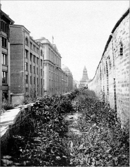 Внутренняя часть Китайгородской стены в районе Старой пл. Фотография 1927 г.