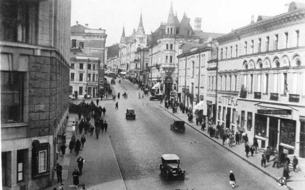 Москва моего детства, особенно если сравнить ее с сегодняшней, выглядела бедной, убогой, обшарпанной. Весь архитектурный антураж не изменился в целом с 1914 года. Кое-где были видны следы октябрьских боев 1917 года и периода Гражданской войны: выбитые кирпичи на здании МГСПС (впоследствии музей Ленина)[6], простреленная снарядом трамвайная мачта около памятника Пушкину, каменные фундаменты разобранных на дрова небольших деревянных домов, оставшихся в годы разрухи без хозяев. Здания, уже десять-пятнадцать лет не ведавшие ремонта, даже «поддерживающего», ветшали. Где-то на окраинах строились жилмассивы для рабочих, вообще же новостроек было мало. Кое-где в центре появлялись новые здания для учреждений, выполненные в сухих, геометрических формах (никакого декора, только прямые углы!), конструктивизм негласно был объявлен ведущим стилем социалистической эпохи.