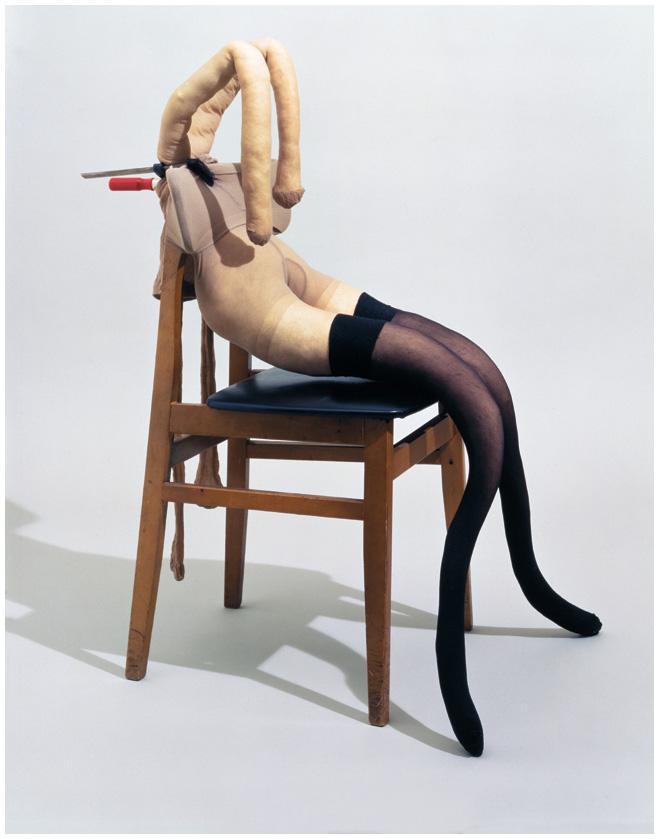 Деревянный стул, виниловое сиденье, колготки, наполнитель капок, проволока, чулки, металлический зажим. 95х64х90 см. 1997 г. Современная галерея Тейт, Лондон