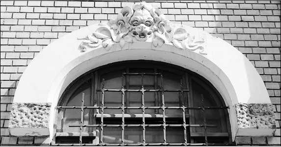 Спящий лев у входа в особняк Грибова (Хлебный переулок, дом № 15)
