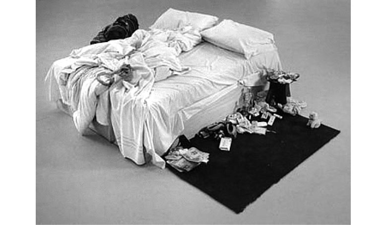 Давайте разберем один конкретный пример – знаменитую работу Трейси Эмин «Моя кровать», представителя молодых британских художников. Именно с ней художница выдвигалась на престижную британскую премию Тернера, а также представляла свою страну на Венецианской биеннале. На всеобщее обозрение «Моя кровать» была выставлена в Tate Britain в 1999 году. Инсталляция представляет собой реальную кровать, которая выглядит весьма неприглядно: на простынях желтые разводы, вокруг лежат пустые пачки из-под сигарет, использованные презервативы и прокладки. Задумка Эмин шокирующе проста: она попросту выставила собственную кровать, в которой провела несколько дней в предсуицидальном состоянии, и целый год в депрессии. В 2014 году «Моя кровать» была продана на аукционе Christie’s за ?2,5 млн. Другая ее инсталляция – «Все, с кем я когда-либо спала» – представляла собой большую синюю палатку, покрытую изнутри множеством имен, как не сложно догадаться, именно тех, с кем спала художница. Несмотря на провокационное название, в этом проекте Эмин исследует не только сексуальность, но и человеческую близость вообще: помимо любовников художница перечислила имена родственников, с которыми спала в детстве на одной кровати, а также двух нерожденных детей.