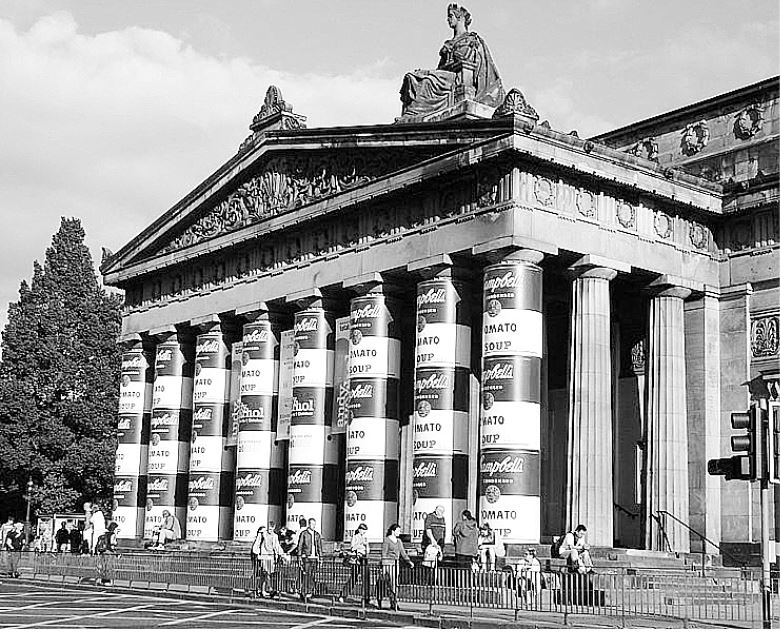 Колонны Королевской академии в Эдинбурге, превращенные в банки «уорхоловского» супа
