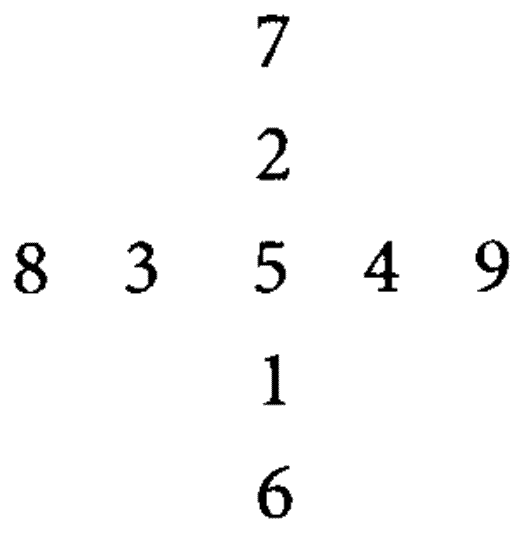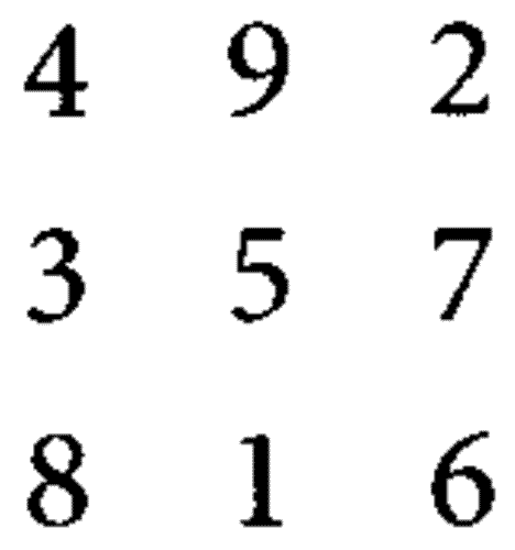 Она представляет собой так называемый магический квадрат, в котором сумма по всем столбцам, рядам и диагоналям равна 15. Этот квадрат считался в Китае базовой моделью Вселенной, в соответствии с которой создавались архитектура, музыка и даже меню к обеду[41].