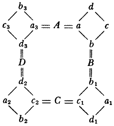 А — первоначальное состояние (в данном случае Человека), A1 — конечное состояние, а, В, С, D — промежуточные состояния. Структуры, которые выделяются из этих состояний, обозначены в каждом случае маленькими буквами а, b,с,d. В отношении структуры этой формулы мы должны помнить, что имеем дело с непрерывным преобразованием одного и того же вещества. Это вещество и его соответствующие состояния преобразования всегда будут порождать себе подобных; так А будет создавать а, а В — Ь; соответственно b даст В, а с — С. Также предполагается, что за а следует b и что формула читается слева направо. Эти допущения остаются в силе и для психологической формулы[71].