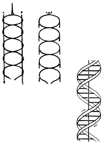 И, наконец, последнее, но не менее важное: генное вещество, как это было открыто Ватсоном, Криком и Вилкинсом, представляет собой двойную спираль. Может быть, эта модель отображает биологическую аналогию с архетипической идеей времени как спирали, которая примиряет линейный и циклический аспекты времени.